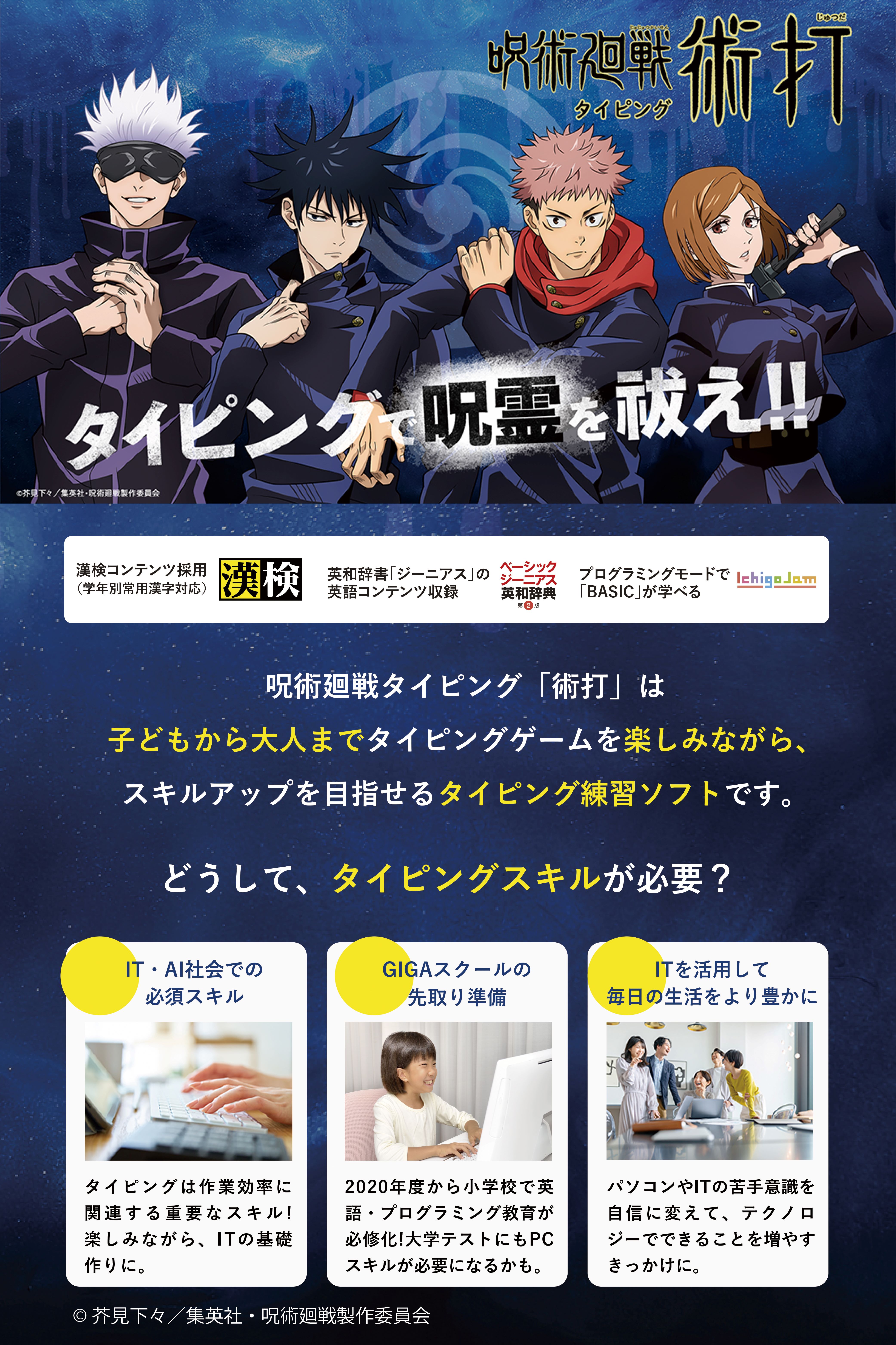 呪術廻戦タイピング「術打」は、子どもから大人までタイピングゲームを楽しみながら、
