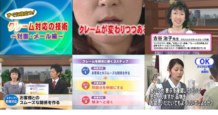 [監修者プロフィール] 古谷 治子(ふるや はるこ) 目次 ■お客様のクレームが変わってきている なぜクレームが発生するのか? レームを解決に導く3ステップ ■ステップ1 初期対応 -- お客様とのスムーズな関係を作る 第一印象を良くするスキル 身だしなみと表情/アイコンタクト/座り方 姿勢の工夫 謝罪のスキル 部分謝罪 会話の3つのスキル 復唱/感謝・謝罪・共感/クッション言葉+依頼形 ■ステップ2 中盤対応 -- 問題点を明確にする 事実問題と感情問題 フィードバック+謝罪・共感 揉めてしまったときの対応 ■ステップ3 終盤対応 -- 解決へと導く 解決策を提案するタイミングは 了承のサイン ■メールでのクレーム対応 ■クレームをビジネスチャンスに!!