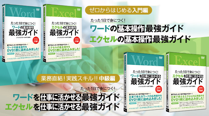 入門編では、はじめてワード、エクセルを使用する方から、なんとなく今まで