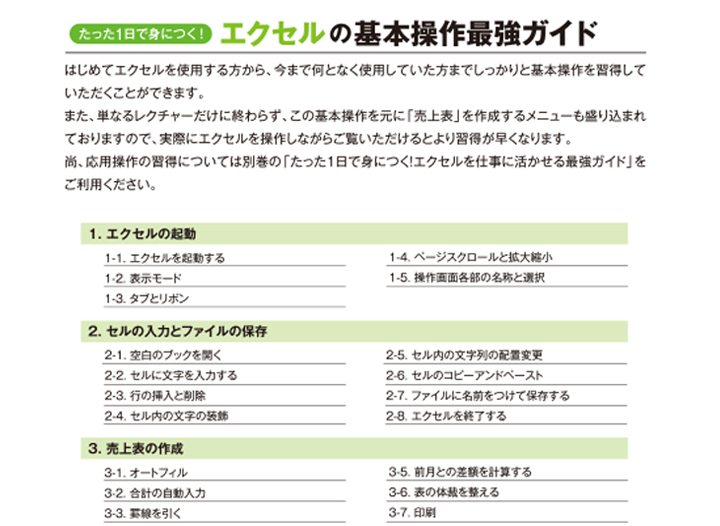 本製品は、パソコンスクールMTCが監修しているため、実際の教室現場でもレクチャーされるような内容が盛り込まれております。